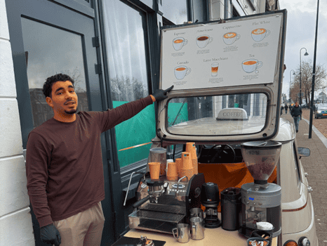 Afgelopen vrijdag bracht Younes met zijn Renault 4 Savanne-editie warmte, koffie en mooie verhalen naar de Oosthavenkade.