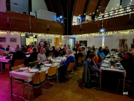 Het begon al op kerstavond, toen we samen met De Windwijzer een heerlijk diner verzorgden. Ruim 70 mensen genoten van de sfeervol gedekte tafels en een driegangendiner. Er was muziek en er werd een kerstverhaal gelezen.